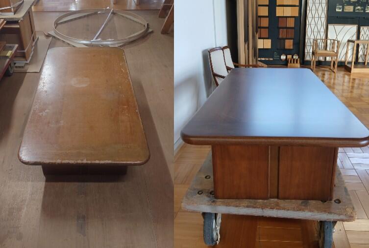 テーブルの天板を再塗装しました。剥離したのちに研磨して打痕、傷を消したのちに再塗装を施しております。